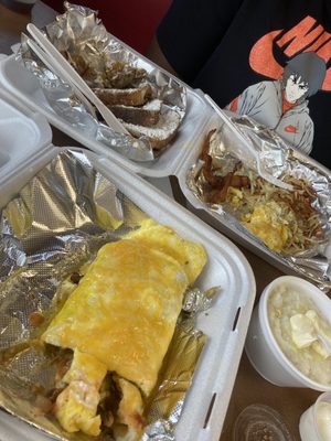 Egg King Cafe offers amenities such as Takeout, Delivery, Wheelchair Accessible, Outdoor Dining, Parking, Outdoor Parking, Accepts Contactless Payments, Takeout, Delivery, Wheelchair Accessible, ensuring a comfortable and convenient experience for clients.